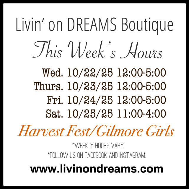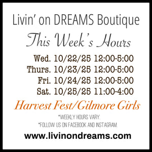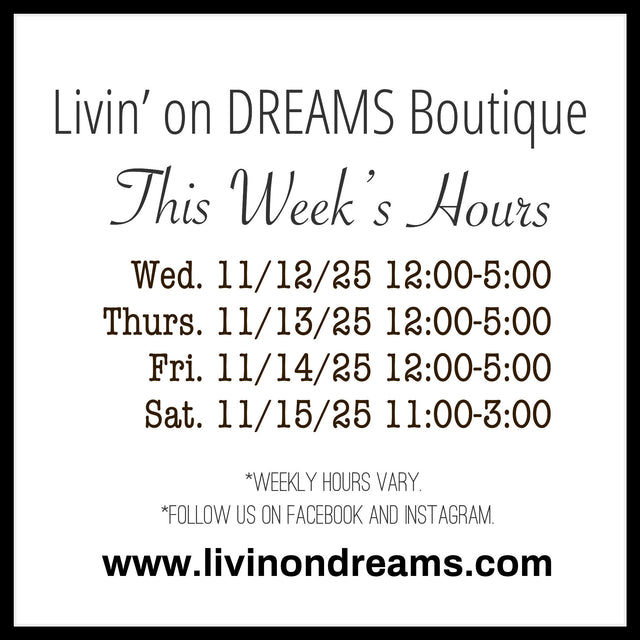 Boutique open hours will be posted every week. Please check back often.